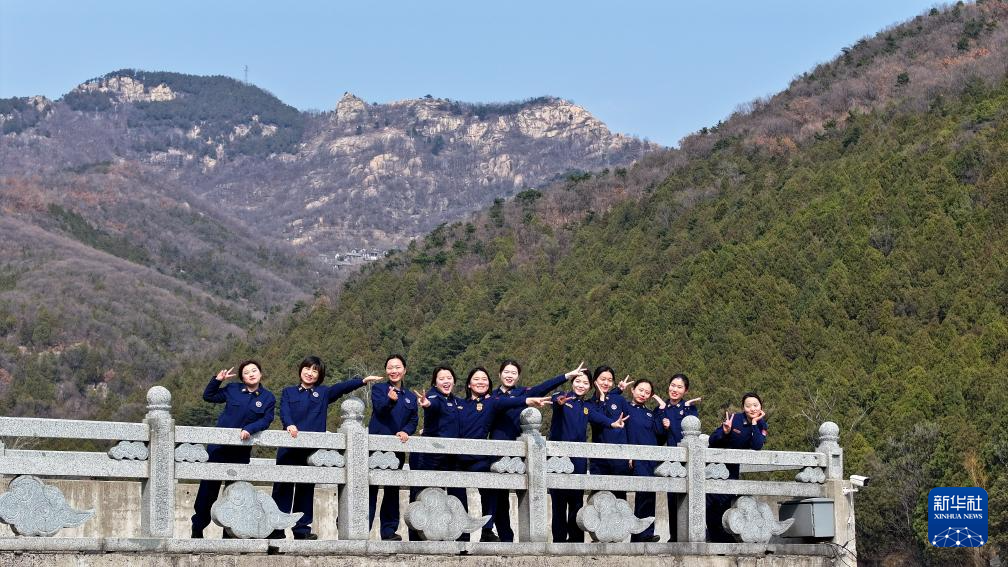 这是3月6日拍摄的泰山消防女子巡查服务队女指战员(航拍照片,3月6日摄)。