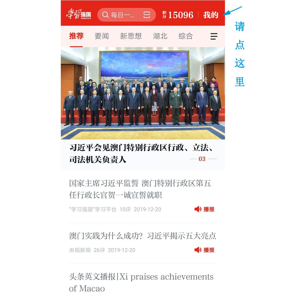 第一步,打开“学习强国”APP,点击屏幕右上角的“我的”;
