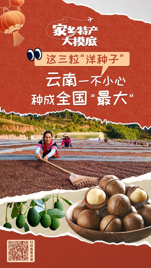 说些“冷”知识——全球最大的澳洲坚果产区在云南临沧,98%以上的中国咖啡产自云南,牛油果价格被“打”下来还得看小城孟连。这三粒“洋种子”漂洋过海,扎根云南,成为当地致富增收的“土特产”,也让世界遇见“云南味道”。