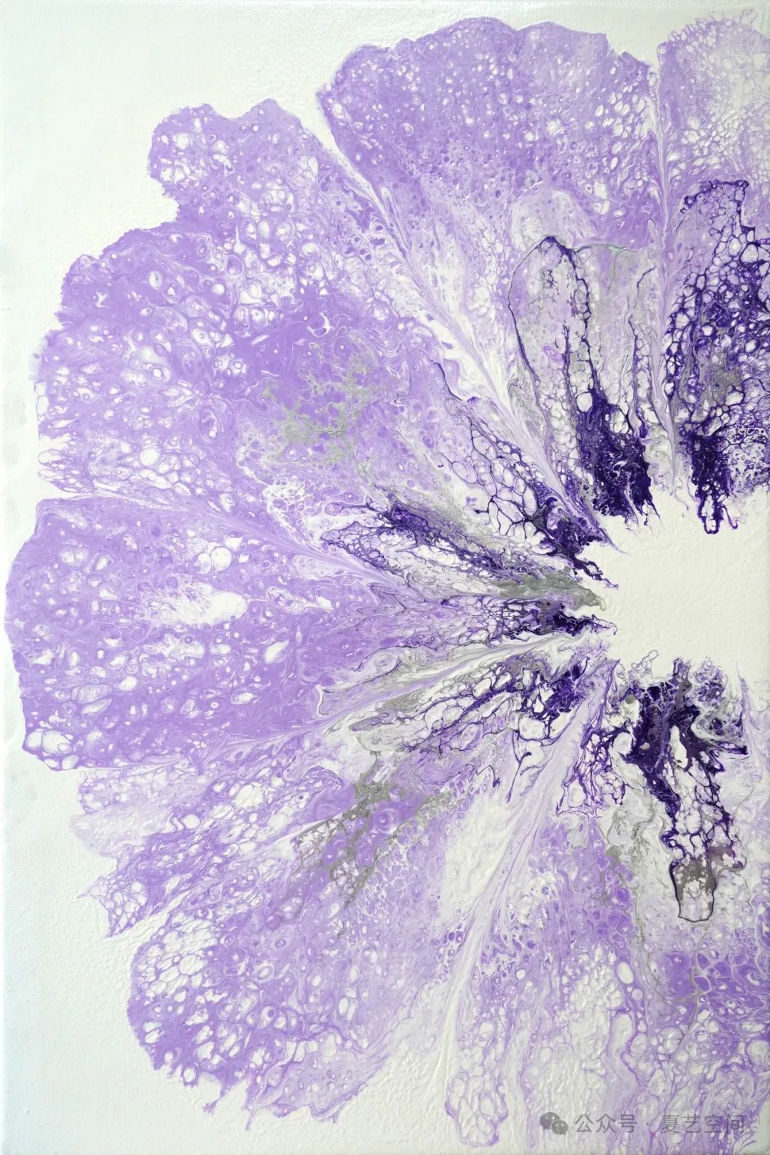 艺术家刘重佳专注于流体绘画的创作,其对颜料流动韵律的把控,对色彩节奏的挥洒,都使其作品充满了流动的张力。艺术家特别为此次展览创作了繁花系列、龙之系列和风景系列,以多样的绘制手法,交叠出丰富的纹理,色彩区域间的动感变化,起伏间融合全新的颜色感觉。