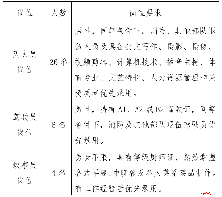 (各岗位招聘人数可根据报名人数、资格审核、体能测试、面试、体检等后续环节适当调剂)