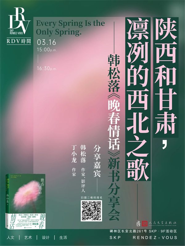 西安|陕西和甘肃,凛冽的西北之歌——韩松落《晚春情话》新书分享会
