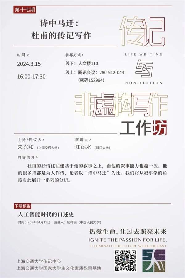 主讲人:江弱水(浙江大学传媒与国际文化学院教授)