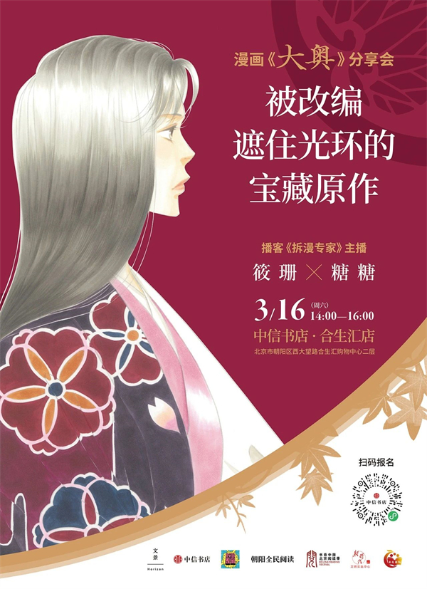 一部作品为何能同时获得手冢治虫文化奖漫画大奖、日本科幻协会Sense of Gender、日本SF大奖等不同领域的首肯?漫画×科幻×历史×性别,吉永史创造的《大奥》宇宙还有多少宝藏值得我们去挖掘? 3月16日,在中信书店·合生汇店,播客《拆漫专家》的两位主播将和大家一起走进吉永史构建的《大奥》宇宙,重新发现这部宝藏漫画的魅力!