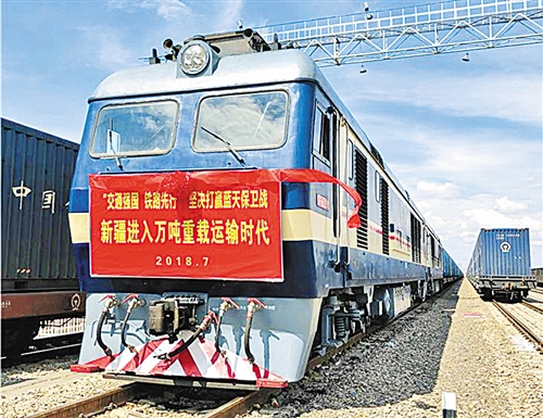 7月4日,中国铁路乌鲁木齐局集团公司首次开行万吨重载货运列车,为疆煤外运、新疆北煤南运提供运力保障。