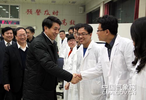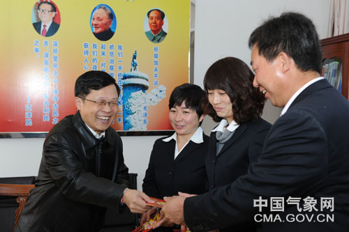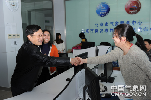 宇如聪到北京市气象局看望慰问干部职工,指导春节服务工作。曹冀鲁摄影