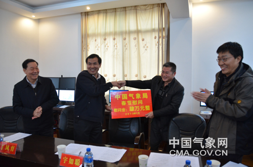 许小峰慰问基层台站职工,送上慰问金。周益平 摄影