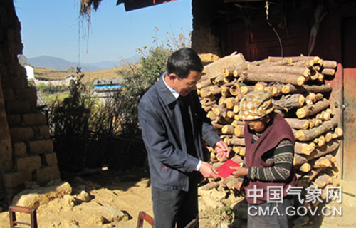 图为保山市气象局负责人慰问村民。张玲艳摄影