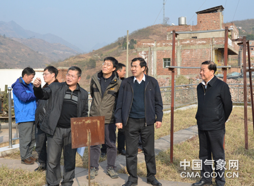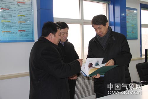 郑国光察看阜平县气象局台站基础业务、气象服务等情况。