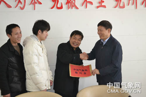 图为气象局负责人慰问孙兆旭。王珍珍摄影