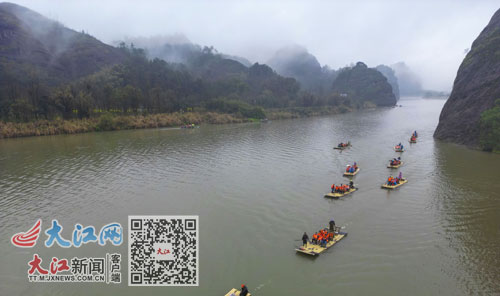 3月17日,鹰潭龙虎山春雨绵绵,游客乘竹筏沿泸溪河而下,静观云雾缭绕间两岸奇峰怪石,绝美的山水风光宛如一幅徐徐展开的水墨画。本报全媒体首席记者 李?律?/span>