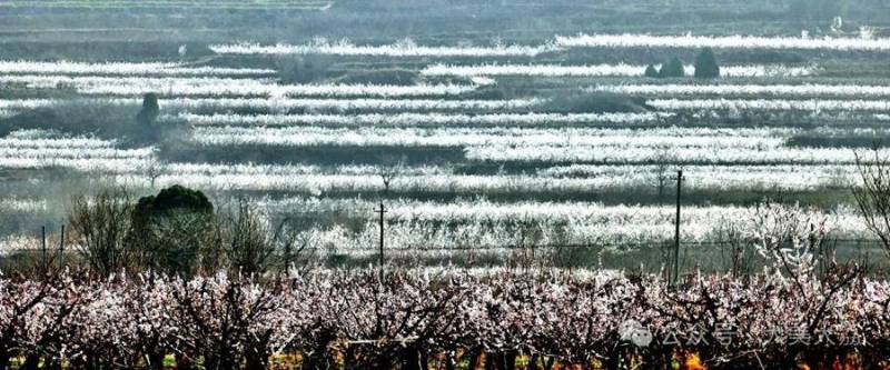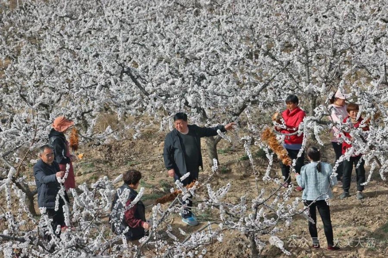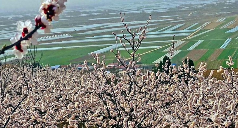 大荔县满山遍野的万余亩杏花提前绽放,点染着层层沟壑,形成了花的海洋。