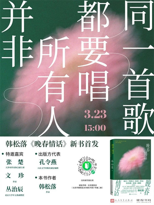 北京|并非所有人都要唱同一首歌——韩松落《晚春情话》新书首发