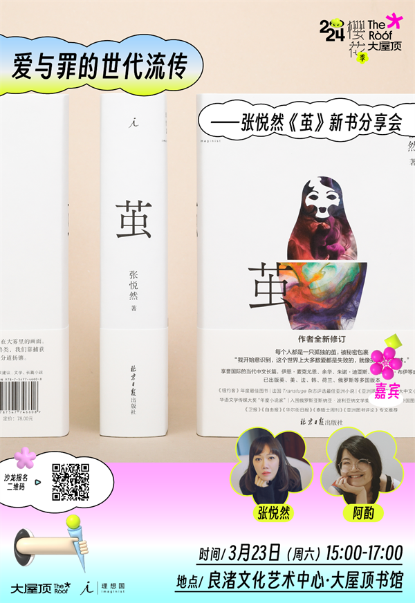 3月23日下午,张悦然将携带全新修订版的《茧》做客大屋顶,和“痴人之爱”主播阿酌一起,聊一聊《茧》的故事,关于爱与罪的世代流传,关于我们内心那些孤独的爱与秘密,关于记忆与成长。