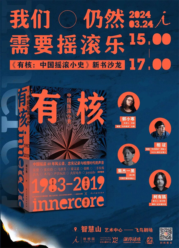 接受了摇滚熏陶的最初一代年轻人已然各奔东西,摇滚乐走出地下,走上舞台,走进我们的日常生活,占据了各大音乐节的文艺高地,今时今日,我们为什么仍然需要摇滚乐?3月24日下午,《有核:中国摇滚小史》的两位作者郭小寒与相征,将携手设计师音乐人奥杰一黑和柯有狐,共同做客智慧山艺术中心飞鸟剧场,回顾与讲述我们心目中的摇滚精神。