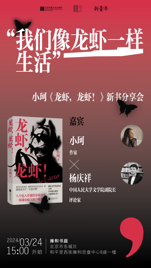 “我们生活在城市,就像龙虾生活在水柜中一样。”作为新一代城市文学的代表作家,小珂从写作伊始,就选择了一个极为年轻、充满未知的领域:城市人列传。在小说《龙虾》的创作谈中,她对此给出的定义就是开篇的那句话。3月24日,我们邀请到北京作家小珂,中国人民大学文学院教授、评论家杨庆祥,做客雍和书庭,一起聊聊现代城市生活的机械和空洞中,究竟还有什么能够令我们心动?