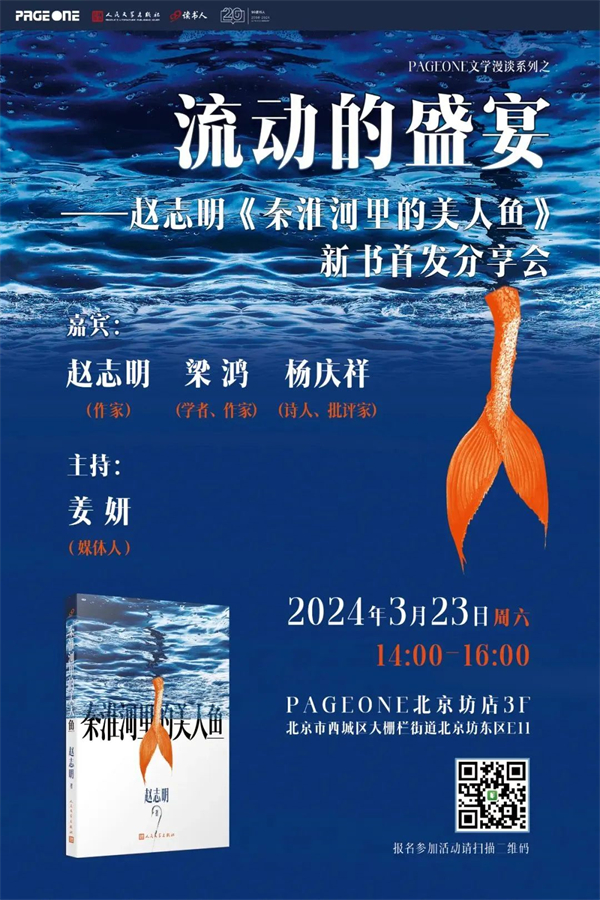 自1998年开始提笔写作,赵志明的文学创作生涯至今已经超过了25个年头。站在人生满五进六的节点回望,往昔的流转,命运的车辙,载浮载沉间的相遇与离别,或许皆是盛宴。3月23日,PAGEONE联合人民文学出版社和九久读书人,为读者带来赵志明最新短篇小说集《秦淮河里的美人鱼》新书首发分享会,并邀请知名学者、作家梁鸿,知名诗人、批评家杨庆祥,著名媒体人姜妍,一起共赴这场“流动的盛宴”。