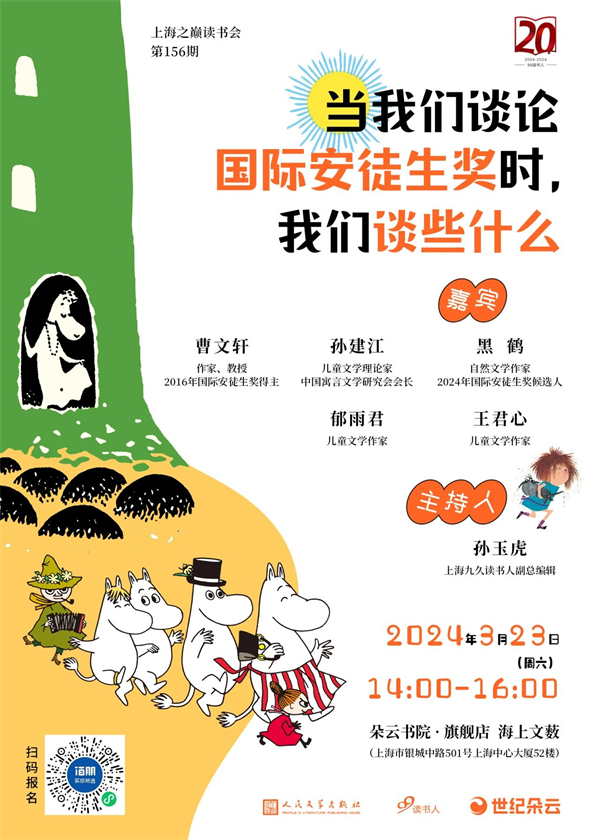 2024年国际安徒生奖将于今年的博洛尼亚国际童书展举办期间(4月8日至11日)公布。此前,中国绘本创作者、插画家蔡皋入围了本届短名单,让我们对今年的评选结果多了几分期待。3月23日下午,在2024国际安徒生奖揭晓前夕,2016年国际安徒生奖得主曹文轩、中国寓言文学研究会会长孙建江、2024年国际安徒生奖中国区候选人格日勒其木格·黑鹤、儿童文学作家郁雨君和王君心,将做客朵云书院·旗舰店,回顾国际安徒生奖作家作品,进一步梳理国际安徒生奖的发展历程和价值取向,并预测2024国际安徒生奖评选结果。