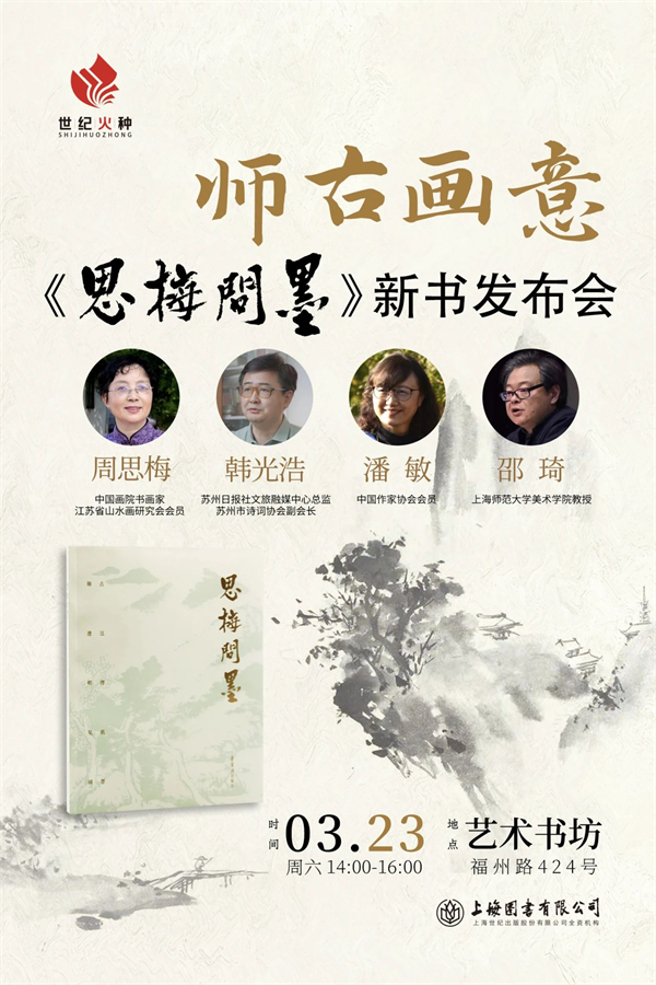 中国书画的最高境界是“古意”二字,“古”中之纯美,含无限生机,且与天地日月同行。周思梅笔下带着“古意”。宋元诸家与吴门画派,给了她无尽的滋养,丈量古人的脚步,寻到自己的山水路径,是她的孜孜以求,但又是她的一种日常。3月23日,中国画院书画家周思梅将携新书《思梅问墨》做客艺术书坊,并将与苏州日报社文旅融媒中心总监韩光浩、中国作家协会会员潘敏、上海师范大学美术学院教授邵琦三位嘉宾共同举办“师古画意——《思梅问墨》新书发布会”。