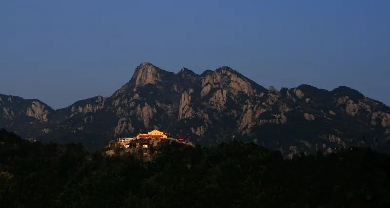 我在2007年第一次上山时就有幸在黄昏时拍了这张神奇的照片。此时太阳即将落下,最后一抹夕阳打在半山腰的禅寺,远处一尊庄严安详的佛祖仰天静卧头像在天地间无比清晰!
