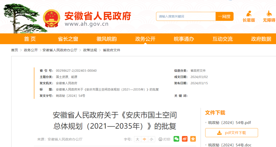 安庆市人民政府、省自然资源厅: