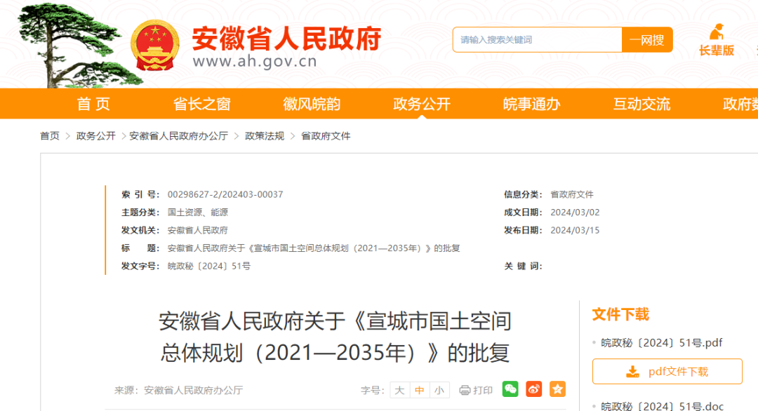 《关于报请批准〈宣城市国土空间总体规划(2021—2035年)〉的请示》收悉。现批复如下: