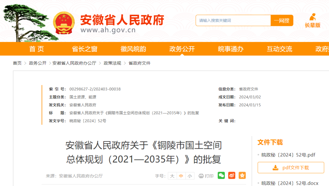 铜陵市人民政府、省自然资源厅: