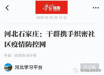 2月14日,学习强国河北学习平台、经济日报对我区社区干群携手织密疫情防控网的新闻进行了报道。