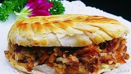 灵宝肉夹馍是一道极具地方特色小吃。灵宝处于小秦岭山脉,小麦为主要种植物,勤劳的人们用精致的小麦粉、温水、碱面、大油、菜籽油、猪头、猪脚、白糖、盐、香料包、干辣椒角等为原材料制作而成。做法简单,外有螺旋花纹、酥脆焦香、内嫩劲道。具有促使肠胃健康的作用。