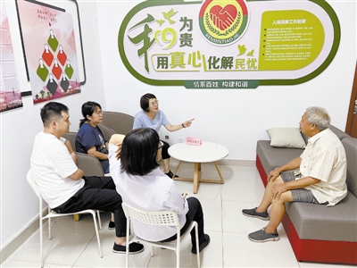 “社区在筑牢筑稳安全稳定基石上不能放松。”金隅悦园社区人口密度高,各类问题错综复杂,为此,迟文静推动实施了“政法进网格”,充分发挥社区内法官、律师、民警的作用,与社区形成整体合力,探索诉源治理工作新格局。社区还与市妇联、区妇联、司法所、公益律师事务所建立共建联系,打造法律援助品牌,帮助居民协调解决邻里矛盾、家庭矛盾、妇女维权、离婚官司等。