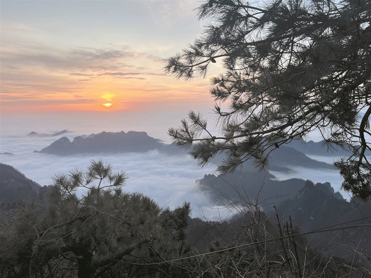 楚天都市报极目新闻讯(记者关前裕)3月26日,雨后初霁,十堰市武当山迎来绝美的日出和壮观的云海。