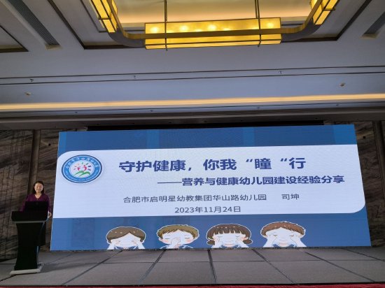 为贯彻落实《健康中国行动(2019-2030年)》、《学校食品安全与营养健康管理规定》、《营养与健康学校建设指南》等相关文件精神,进一步推动全国营养与健康学校建设工作,中国学生营养与健康促进会于2023年11月24日在福建省福州市平潭县举办了营养与健康学校建设培训交流会。合肥市启明星幼教集团华山路幼儿园执行园长司坤代表安徽省参加此次会议,就我园在“营养与健康示范幼儿园”建设中的相关特色经验及近视防控建设等工作进行了分享汇报。
