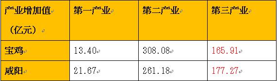 但宝鸡的GDP居于榆林、咸阳之后,甚至一度被延安超越,自诩的“老二”,多少经历了些迭出前三甲的“现实沧桑”。但从前不久公布的陕西各市第一季度GDP排名中,宝鸡又一次取代了咸阳,以487.39亿元领先27.26亿元。在两地的差距里,自然是第一第二第三产业的增加值起到了“拉分”因素,不妨参照表一。