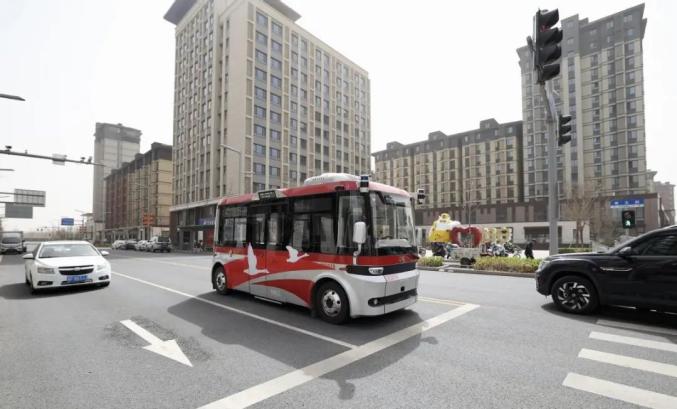 △2024年3月28日,智慧公交车在雄安新区街道上行驶。