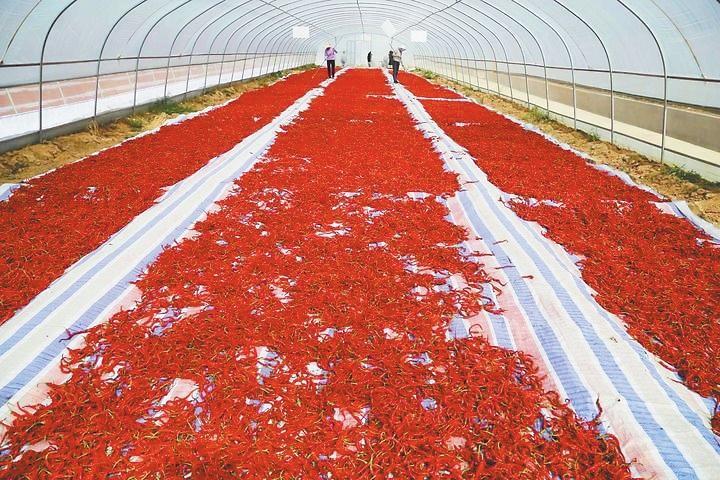 甘谷县安远镇辣椒基地在晾晒辣椒。 王克贤