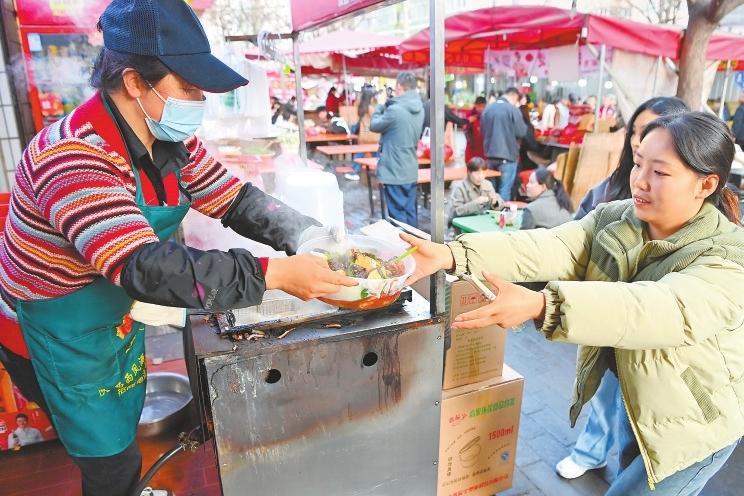 品尝麻辣烫的外地游客络绎不绝。 丁 凯