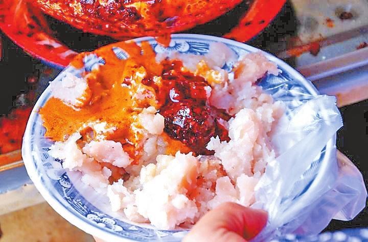 市面上,众多店家将荞面加水入锅、收汁变稠后形成呱呱。每当有食客光顾,店主就熟练地将呱呱捏碎,撒上盐、醋、酱油、芥末、蒜泥、芝麻酱等十多种调料,再浇上麻辣烫同款“灵魂汁子”——油泼辣子,令人垂涎的美食就上桌了。