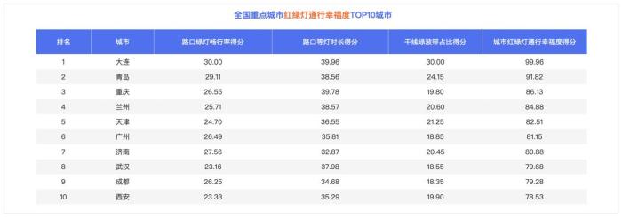 首发红绿灯通行幸福度榜单,大连、青岛、重庆领衔