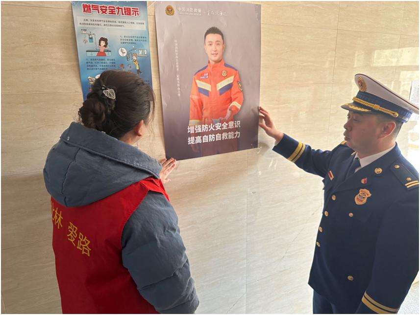在小区广场,工作组人员向小区居民发放消防宣传资料,并详细介绍了家庭防火常识、火灾逃生技巧等消防安全知识和燃气安全使用方面的注意事项,并在营业场所和单元楼道处张贴消防安全警示宣传海报。