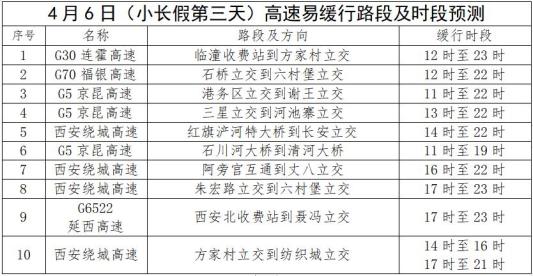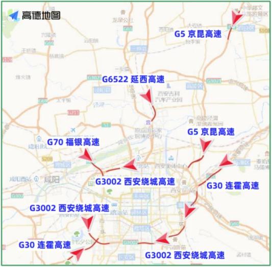 G30连霍高速、G5京昆高速、G65包茂高速、G3002西安绕城高速等高速部分路段。