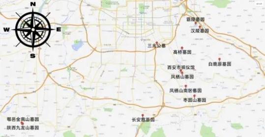 西安市的12个主要墓园分布如下图: