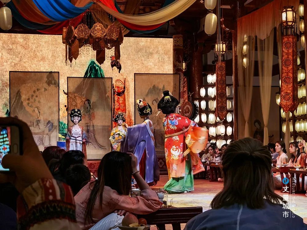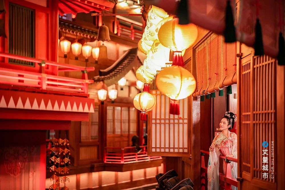 第一重:生活场景还原。邀请长安十二时辰原班美术置景团队,等比例复刻剧中景点建筑,精心设计软装陈设,复原长安坊间的市井生活氛围。