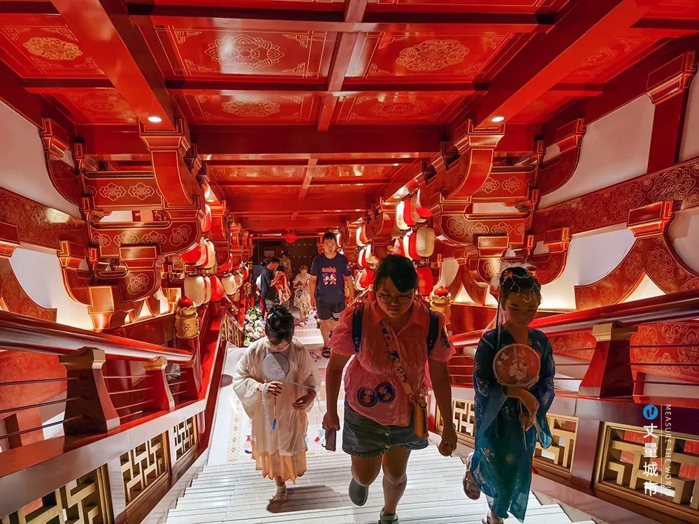 第三重:游客身份转换。通过视觉奇观告诉游客即将进入另一个世界。朱红色为主的街区正门古建筑门楣与商业综合体外立面形成强烈反差,将游客从现代生活中剥离。