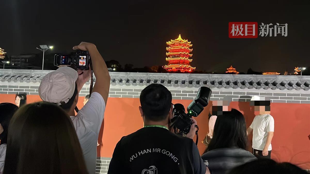 黄鹤楼前的一处红墙成了热门打卡点(图源:极目新闻)