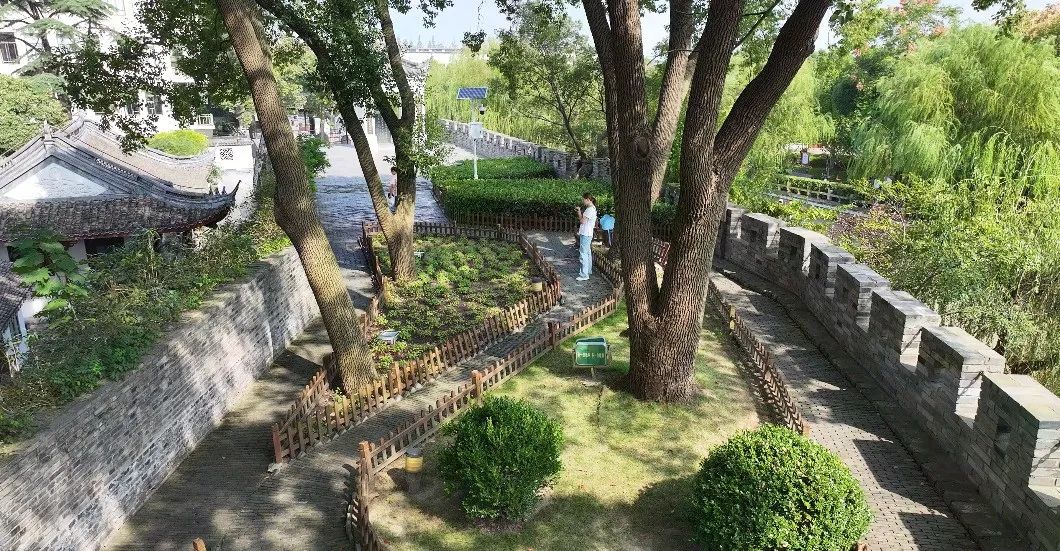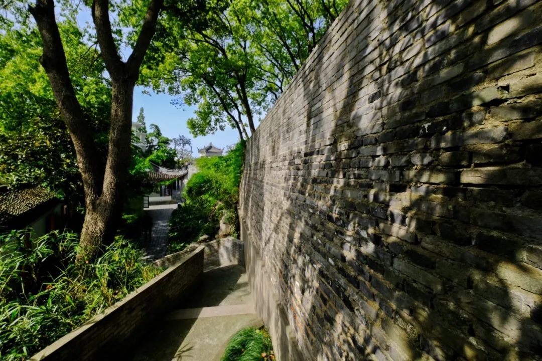 沿着古城墙东面的小路往南走,便能概览古城墙的全貌,东南段城墙可称川沙城古迹荟萃之处,上有魁星阁、岳碑亭。