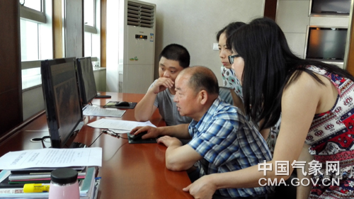 18日13时,雨雾笼罩着整个城市,气象局的业务值班室内,业务人员轮流专注地盯着屏幕上的雷达回波动态图及区域站降雨量,不敢有半点松懈。局长朱文忠不断和市气象台会商天气,准备随时发布预警。