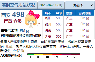 记者通过陕西省空气质量实时发布系统了解到,截止4月11日8时,西安、咸阳、铜川、渭南、榆林等地已达严重污染 !