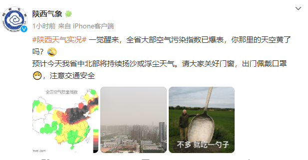 据陕西生态环境预报:11日至12 日,全省大部处于高压后部,扩散条件不利, 陕北、关中以及陕南东部等地受沙尘滞留影响,可能出现持续扬沙或浮尘天气 。
