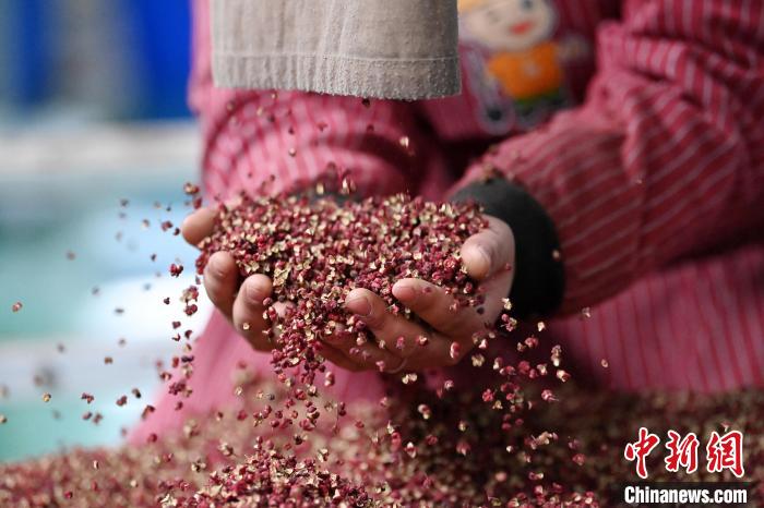 图为工作人员检查初筛的花椒。(资料图) 九美旦增 摄