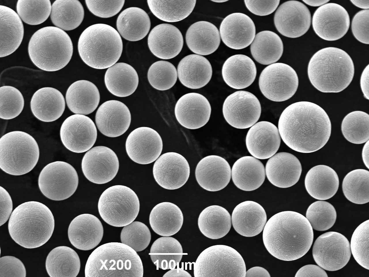 “金属被等离子体熔化为液膜,其在超高速旋转带来的离心力下雾化,然后在表面张力作用下形成球形颗粒。我们的产品球形度高、粒径细小。粉末冶金材料粒径越细就越均匀。”